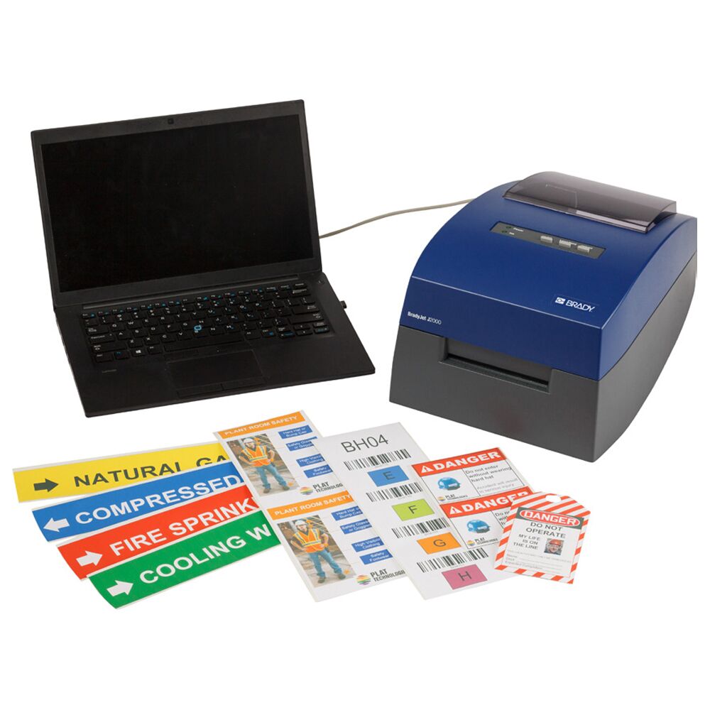 The BradyJet J2000 prints on Brady’s reliable indoor sign, tag and label materials that stay attached and remain legible when exposed to liquids, alcohol and indoor lighting. They can be counted on to warn coworkers about hazards, or to instruct them on the optimal use or maintenance of machinery.