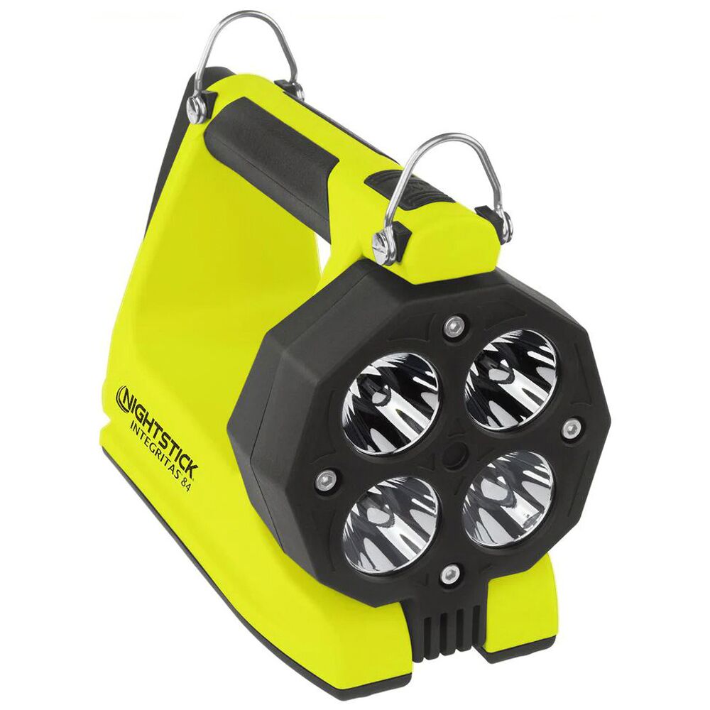 The INTEGRITAS™ 84 Intrinsically Safe Rechargeable Lantern generates a scene-filling 600 lumens for an ultra-long 13 hours from four separate LEDs housed in a 180-degree articulating head for maximum versatility. Holding down the switch enables a battery-saving 250-lumen low mode.